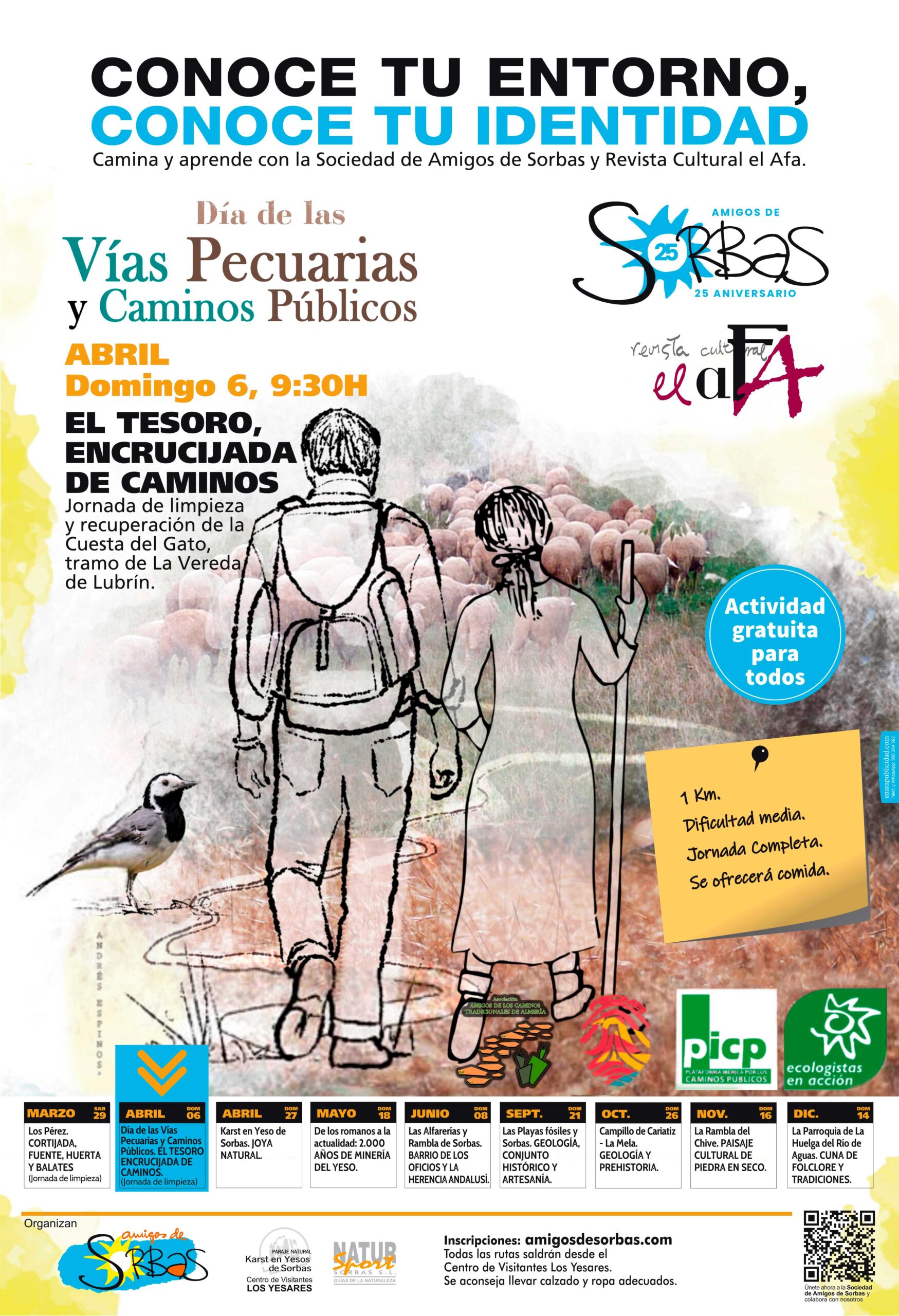 Instrucciones: El punto de encuentro es en el Centro de Visitantes Los Yesares, a la entrada del Casco Histórico de Sorbas